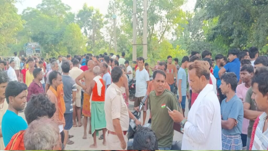 घटना के विरोध में गुस्साए ग्रामीणों ने सड़क जाम कर दिया है। देखते ही देखते सड़क पर वाहनों की लंबी कतारें लग गईं और पूरे इलाके में अफरातफरी मच गई। सूचना मिलते ही बुनियादगंज थाना पुलिस मौके पर पहुंची और जांच शुरू कर दी है। फिलहाल सड़क जाम के कारण आवागमन ठप है और पूरे क्षेत्र में तनावपूर्ण माहौल बना हुआ है।