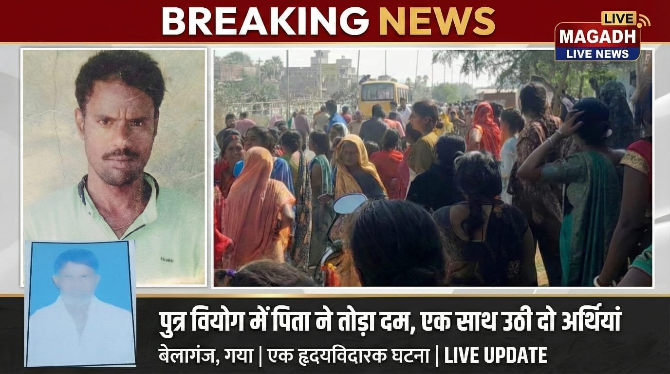 बेलागंज (गया)। बिहार के गया जिले से एक ऐसी खबर सामने आई है जिसने मानवीय संवेदनाओं को झकझोर कर रख दिया है। बेलागंज थाना क्षेत्र के लोदीपुर लालगंज गांव में पुत्र वियोग में एक पिता ने भी अपने प्राण त्याग दिए। सड़क दुर्घटना में इकलौते चिराग के बुझने के मात्र 12 घंटे के भीतर पिता की मृत्यु ने पूरे इलाके को गमगीन कर दिया है।