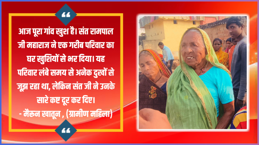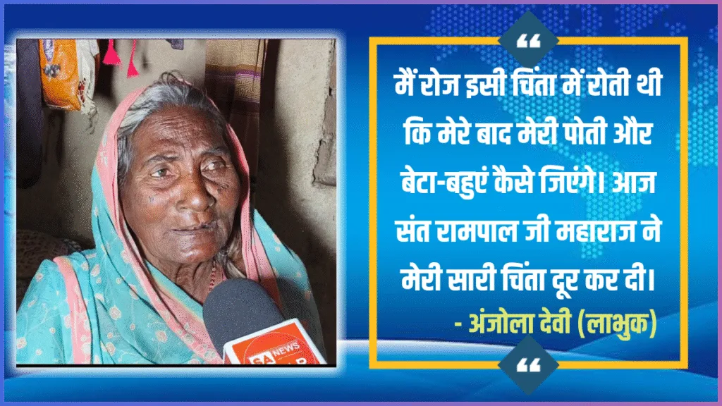 मदद पाकर भावुक हुईं अंजोला देवी की आंखों से आंसू छलक पड़े। उन्होंने कहा, “मैं रोज इसी चिंता में रोती थी कि मेरे बाद मेरी पोती और बेटा-बहुएं कैसे जिएंगे। आज संत रामपाल जी महाराज ने मेरी सारी चिंता दूर कर दी।”