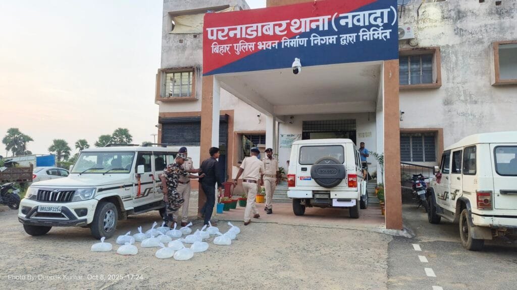 नवादा। परनाडाबर थाना पुलिस ने गुप्त सूचना के आधार पर बड़ी कार्रवाई करते हुए मुगलसराय गांव के पास बोलेरो गाड़ी पर लदी 200 लीटर देशी शराब के साथ एक शराब तस्कर को गिरफ्तार किया है।अपर थाना अध्यक्ष गौतम कुमार ने बताया कि पुलिस टीम को सूचना मिली थी कि बोलेरो वाहन से शराब की खेप लाई जा रही है। इस पर त्वरित कार्रवाई करते हुए पुलिस ने छापेमारी की और मौके से एक व्यक्ति को गिरफ्तार कर लिया।