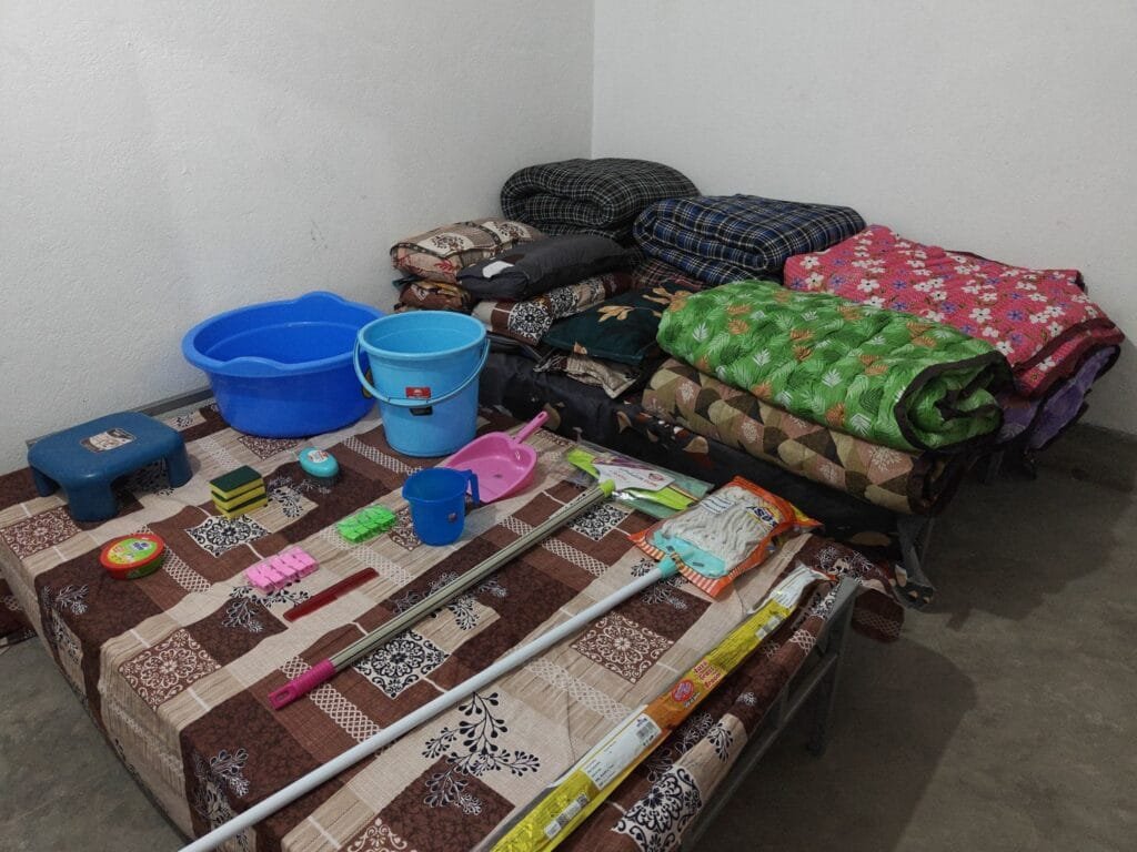 - आराम का इंतजाम: कमरों में बिछाने के लिए गद्दे, तकिए, रजाई और अलमारियां।