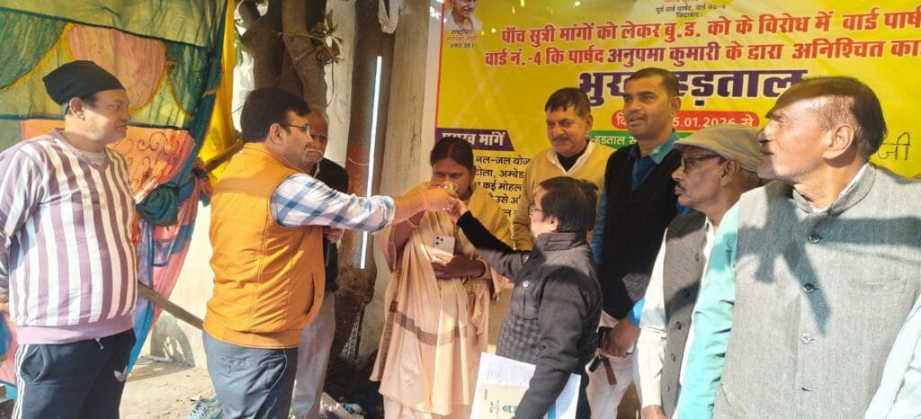 वार्ड पार्षद वार्ड नं 04 में क्षतिग्रस्त जलापूर्ति पाइप के जगह जगह पर क्षतिग्रस्त होने के कारण आम जनता को हो रही परेशानी सहित अन्य मांगों को लेकर शुक्रवार से अनिश्चितकालीन आमरण अनशन पर बैठ गई थीं। शुक्रवार को दोपहर बाद अनशन स्थल पर गया नगर निगम के सिटी मैनेजर मो. नजमुज़ जफर तथा पवित्र कुमार पहुंचे।